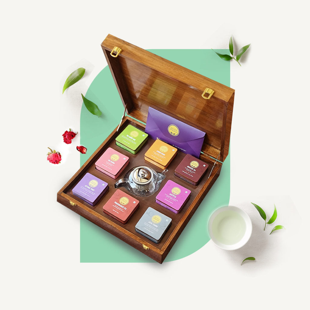 Tea is the finest solution to every catastrophe and confusion of that the day may bring. Herbal tea with abundance of antioxidants, minerals and vitamins, not only make your body healthy but also help to unwind, recover and refresh the mind. Seven Spring brings to you the Special Tuscan Joy made specifically on special order. It consists of eight tins of tea flavours of your choice and a glass kettle. The Box is special as it is reusable and looks class apart.